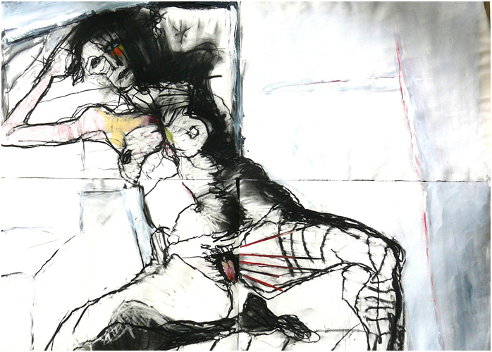 # 125 - Untitled (Lisa) 1998 Charcoal, Pastel, Collage on Paper 44 x 60